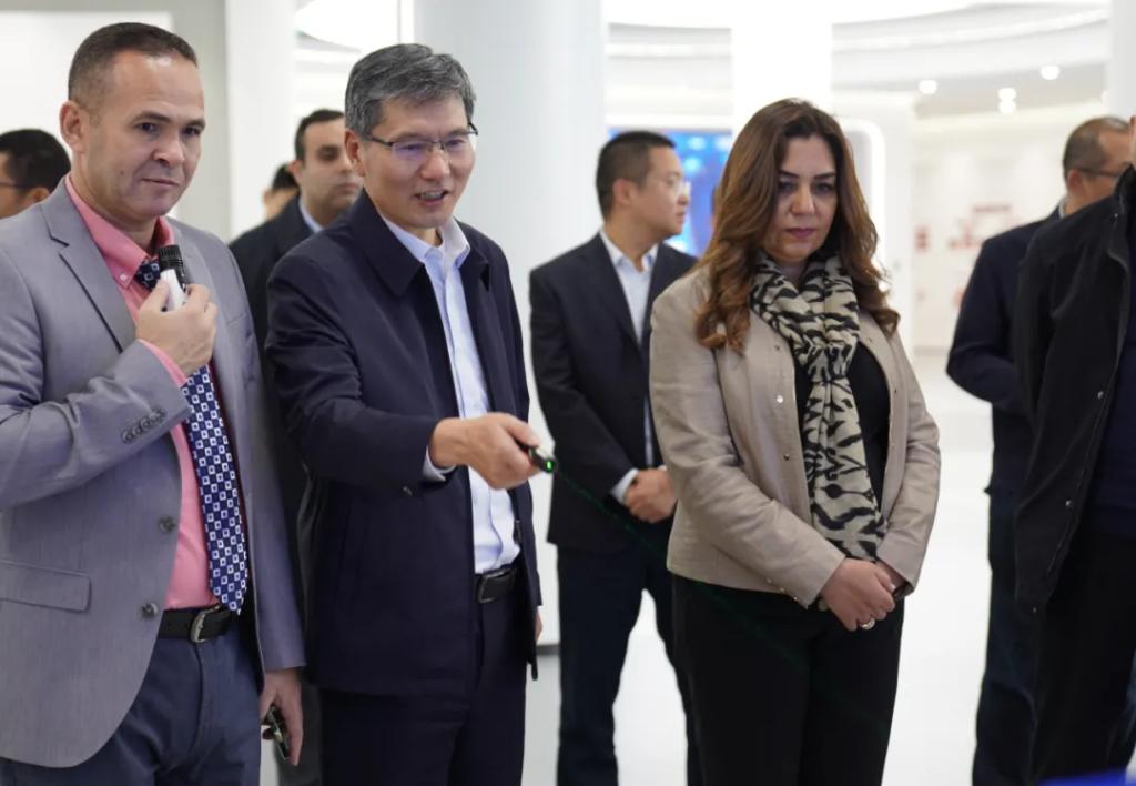 马纳尔一行参观了优发国际科技展示厅,了解了优发国际集团的产业布局、清洁能源装备、国内外市场等情况。